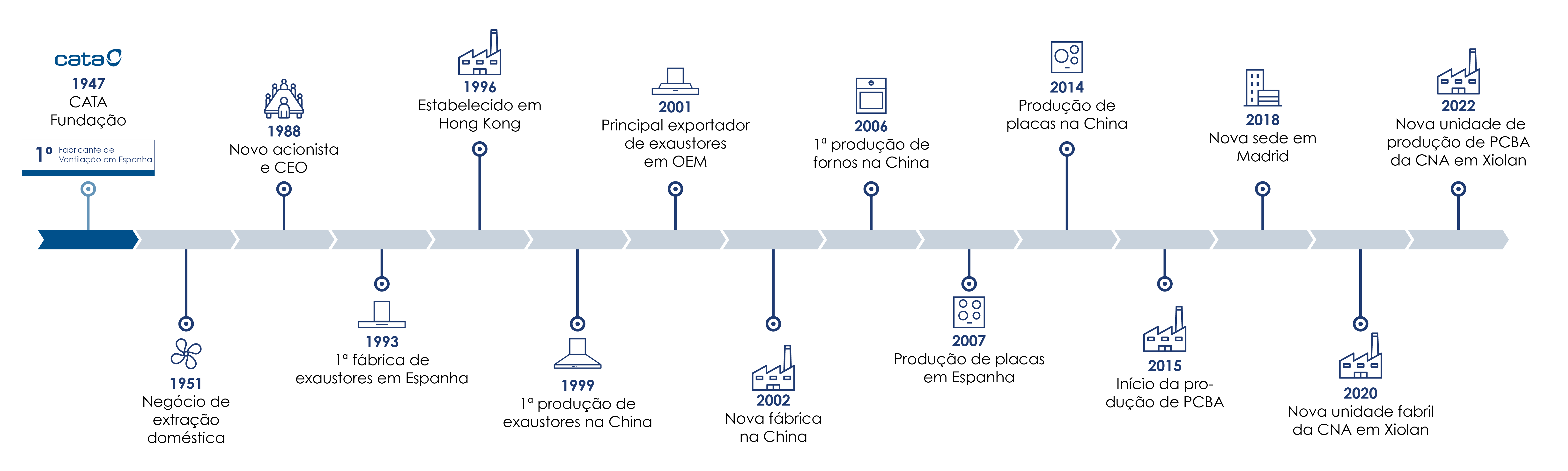 A Cata Electrodomésticos foi a origem do que hoje conhecemos como Grupo CNA. Tudo começou em 1947, em Torelló (Espanha), com uma pequena fábrica de eletrodomésticos que lançou as bases de um grupo que hoje reúne quatro mar-cas líderes e várias empresas ligadas ao setor.